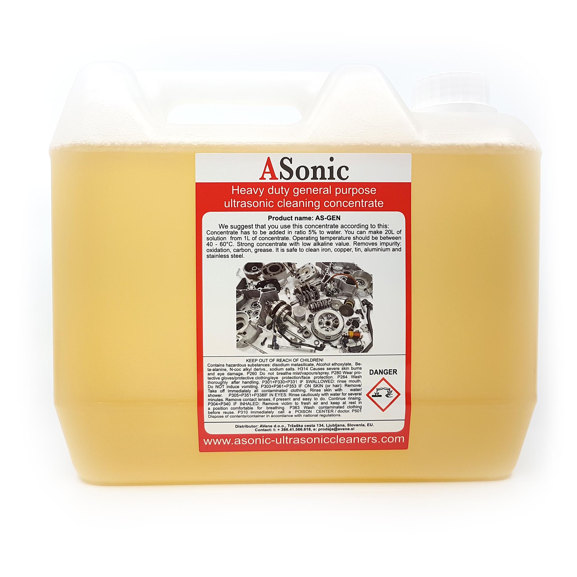 Ultrazvukové čistící koncentráty ASonic jsou určeny nejen pro profesionální/průmyslové použití, ale také pro amatérské použití. Tento vysoce výkonný koncentrát pro všeobecné použití byl navržen pro tvrdé materiály a čištění těch nejhorších nečistot, jaké si dokážete představit. Odstraňuje nečistoty jako prach, špínu, olej, mastnotu. Bezpečné použití na kovy, slitiny, plasty, pryž, keramiku, sklo.