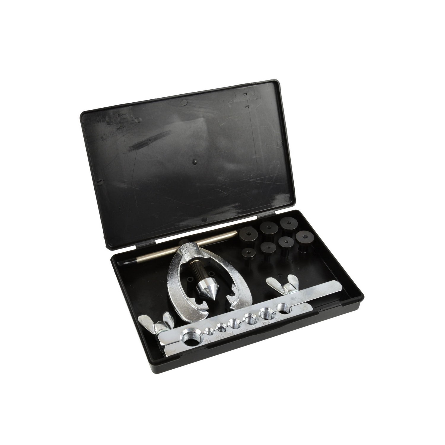 Tuto sadu lze použít k výrobě jednoduchých i dvojitých světlic i světlic ISO. Lze použít s měděnými, hliníkovými, ocelovými trubkami o maximální tloušťce trubkovnice 1 mm. Navrženo speciálně pro brzdové potrubí. Dodává se s úložným pouzdrem.