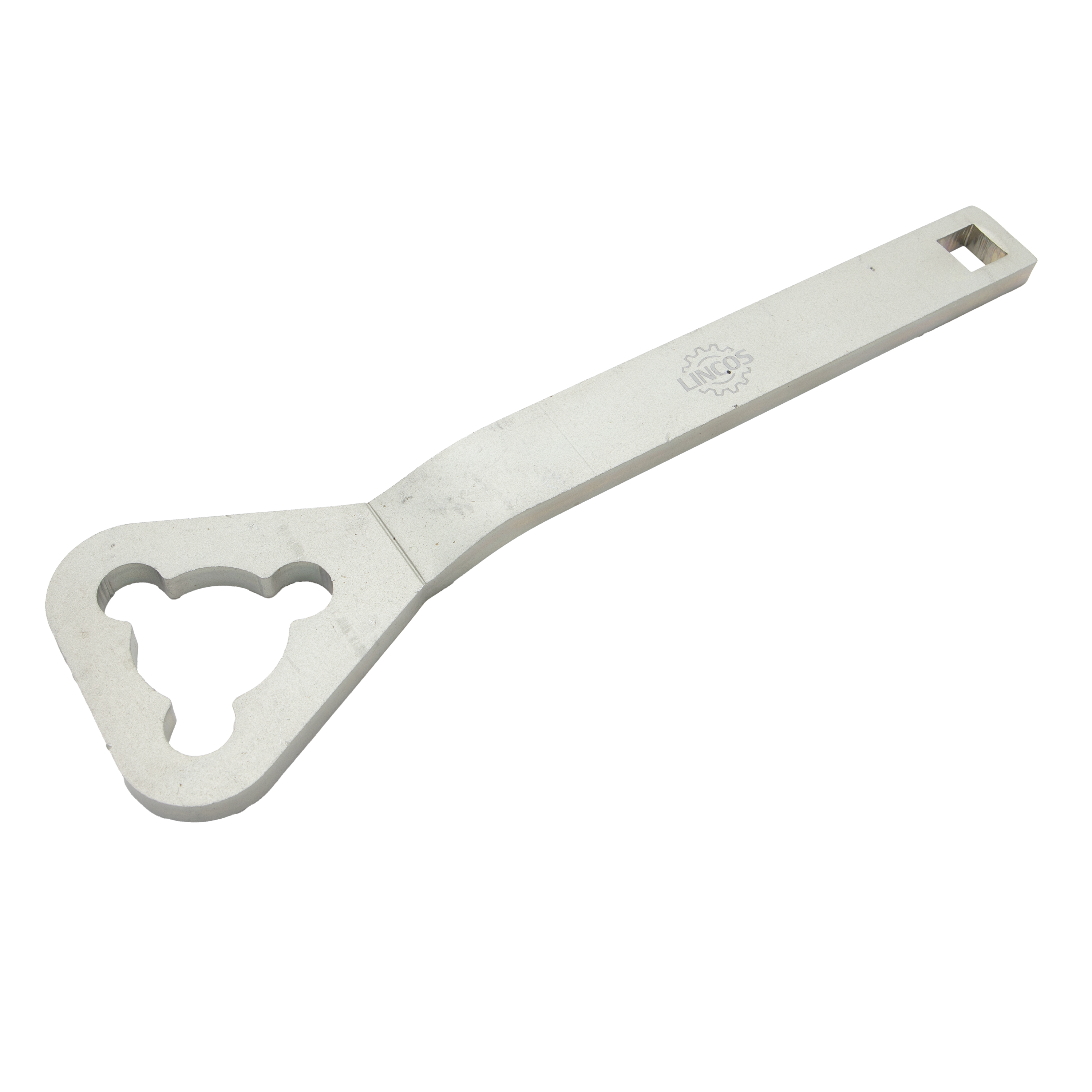 Tento vícepolohový klíč na napínání rozvodového řemene je speciálně navržen pro použití na motorech VAG. zajišťuje snadné seřízení a přístup k utažení napínací matice u benzínových i naftových motorů. Tento nástroj je zvláště užitečný pro práci ve stísněných motorových prostorech, kde standardní klíče nedosahují nebo nedopadají správně.