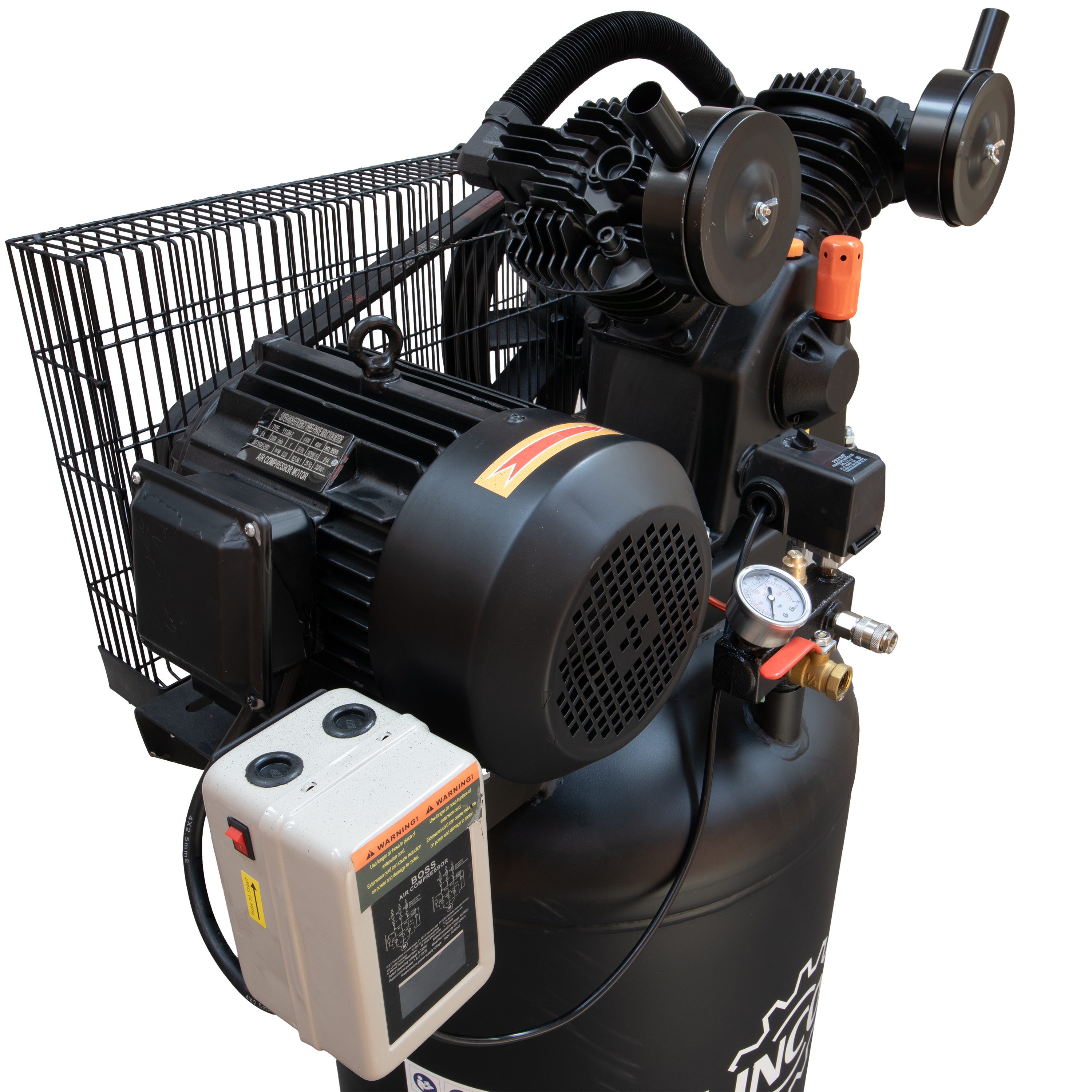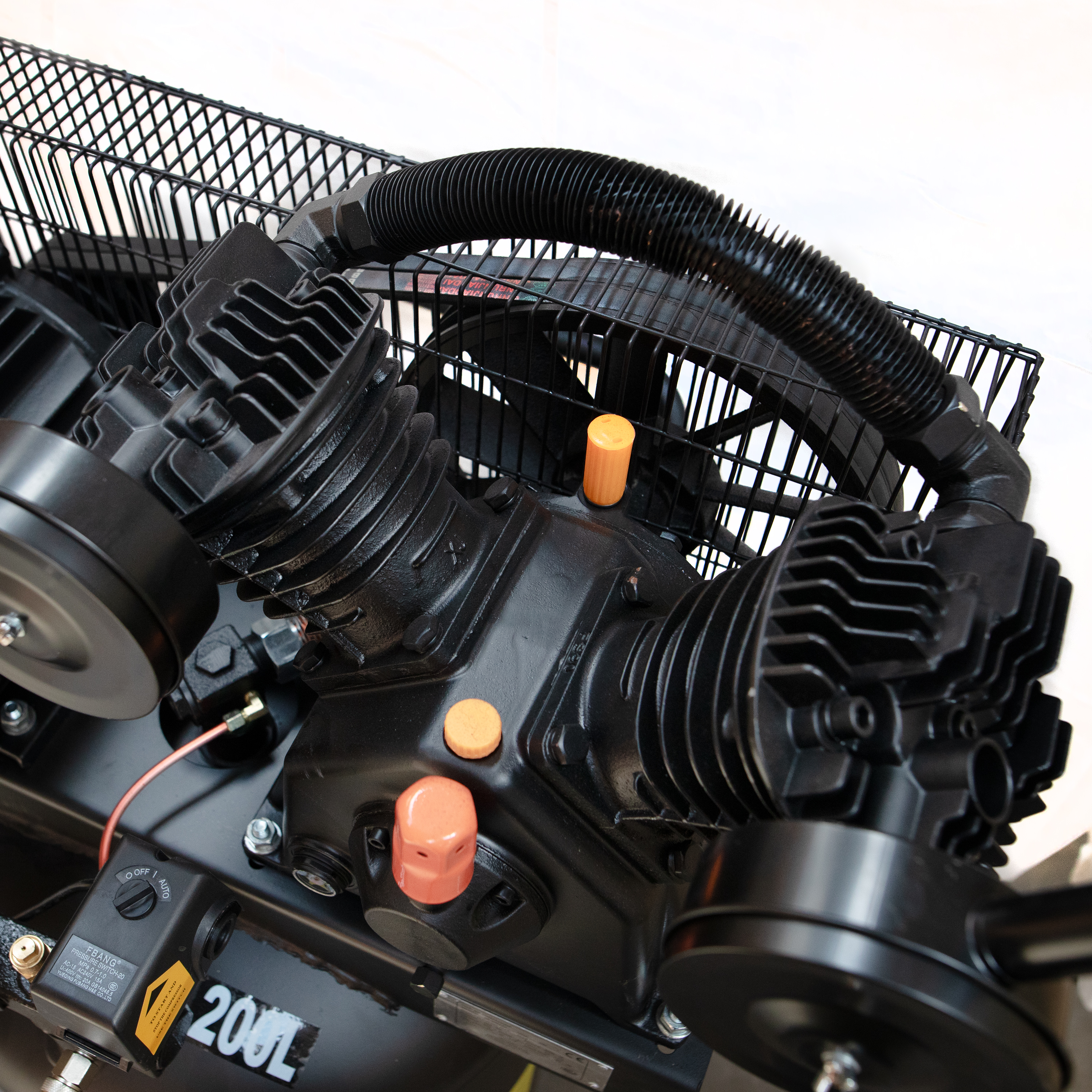 Tento průmyslový vzduchový kompresor je vybaven výkonným 4kW motorem s měděným vinutím a pracuje s napájením 400V/50Hz. Má 200litrovou vertikální nádrž, která dodává 600 litrů vzduchu za minutu při stabilních 900 otáčkách za minutu, což zaručuje dlouhou životnost čerpadla. Pracuje při tlaku 10 barů se 2 válci a 1 stupněm a nabízí efektivní výkon.
