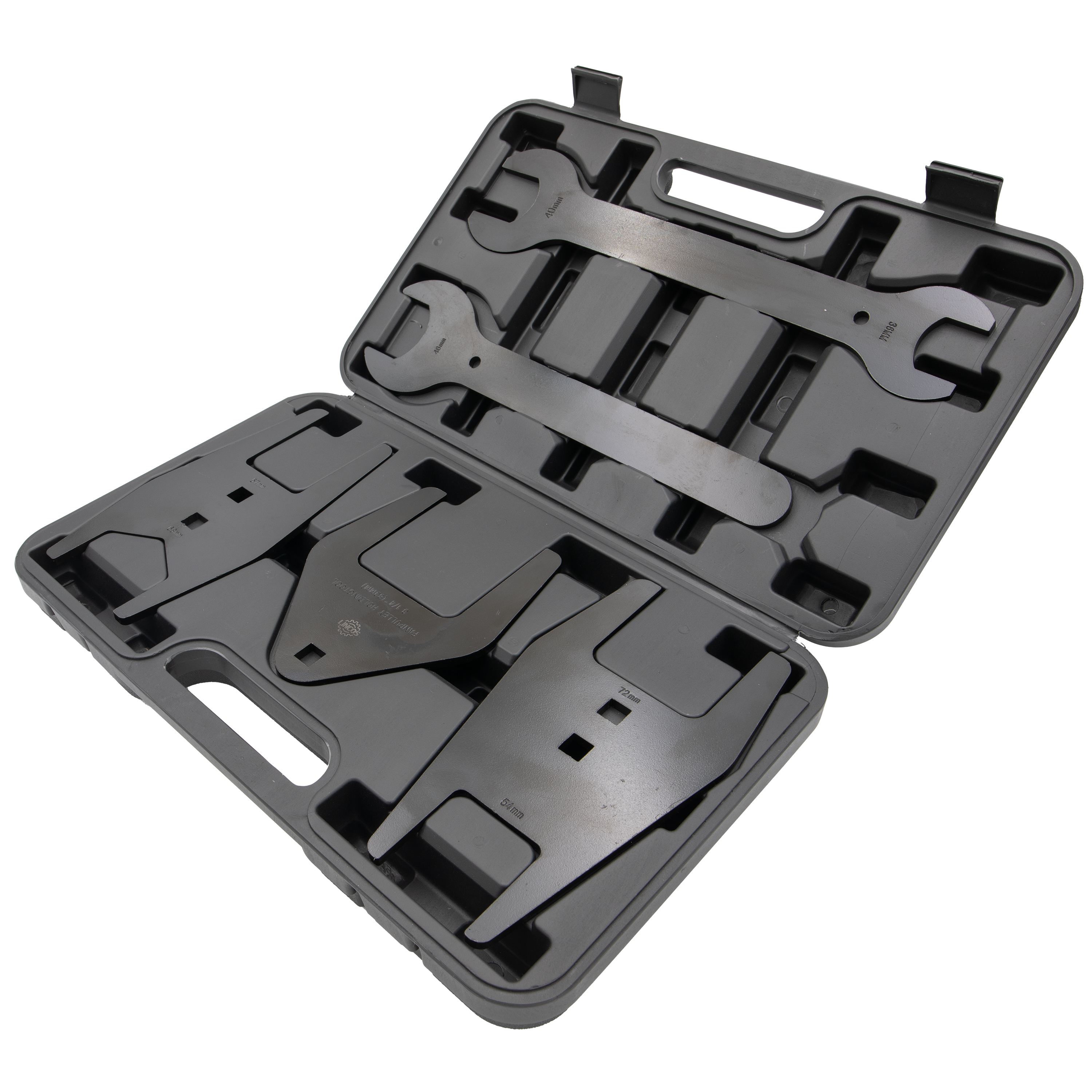 Sada klíčů na větráky (5ks) je univerzální nástrojová sada určená k usnadnění demontáže a instalace komponent viskózních spojek ventilátorů. Sada je ideální pro servis chladicích systémů vozidel vybavených originálními ventilátorovými spojkami.