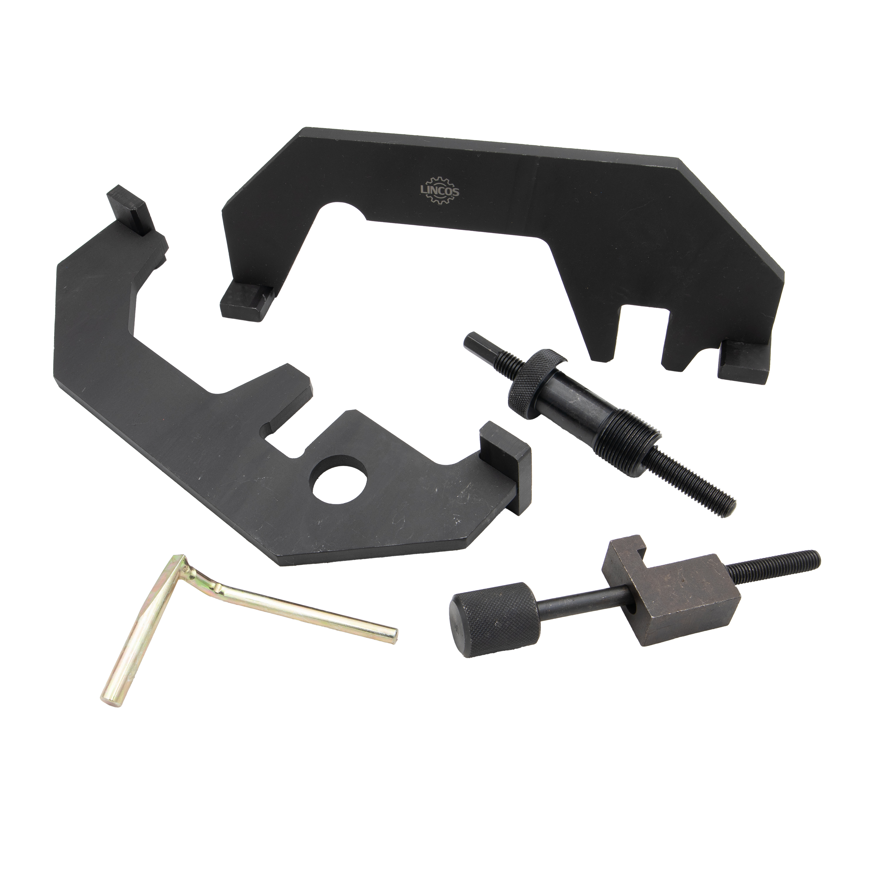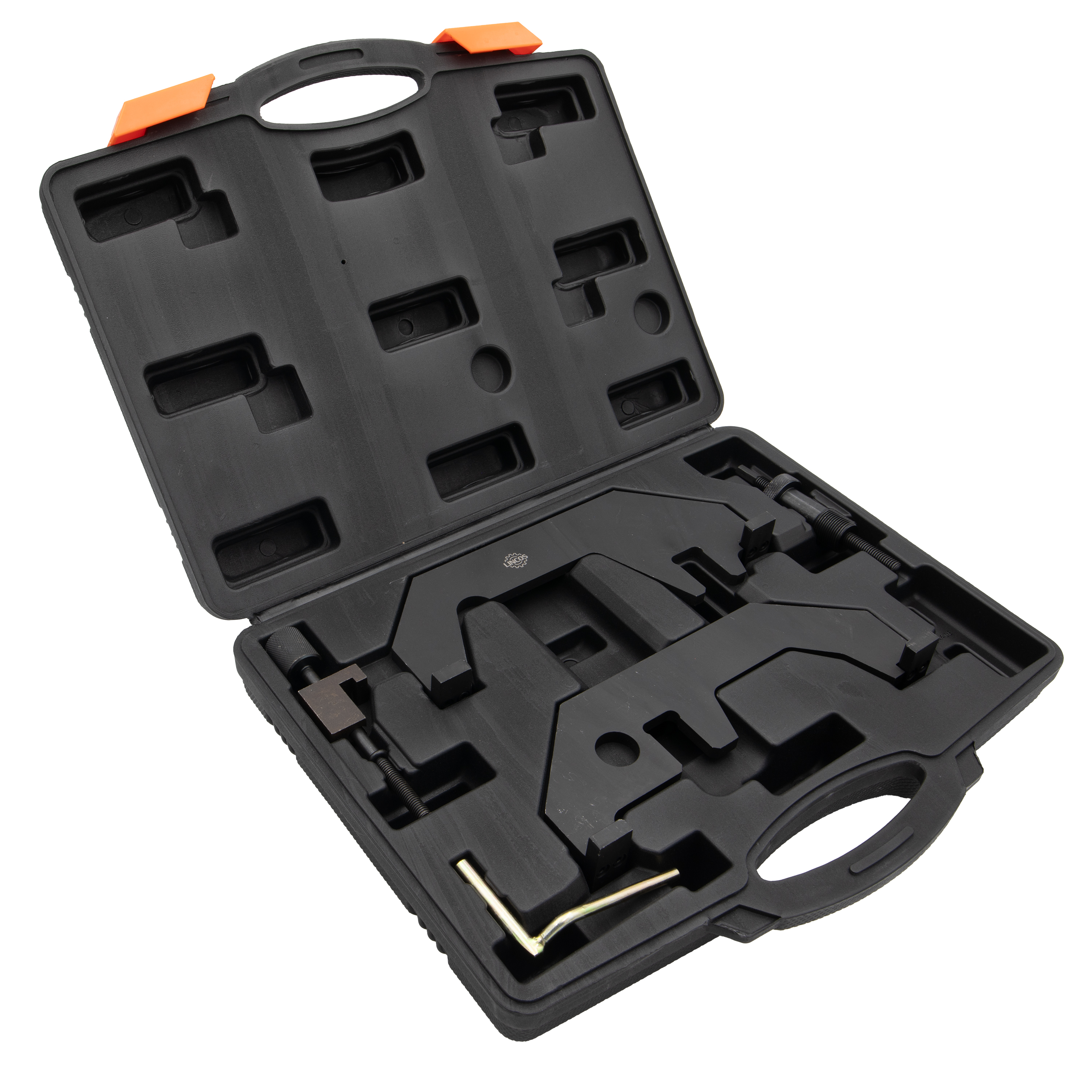 Tato sada nástrojů pro blokování rozvodu motoru je speciálně navržena pro novější 4válcové turbo motory BMW N20 a N26. Sada obsahuje specializované nástroje pro upevnění vačkového hřídele a enkodérového kola VANOS v horní úvrati, klíčové pro přesné časování a údržbu motoru.