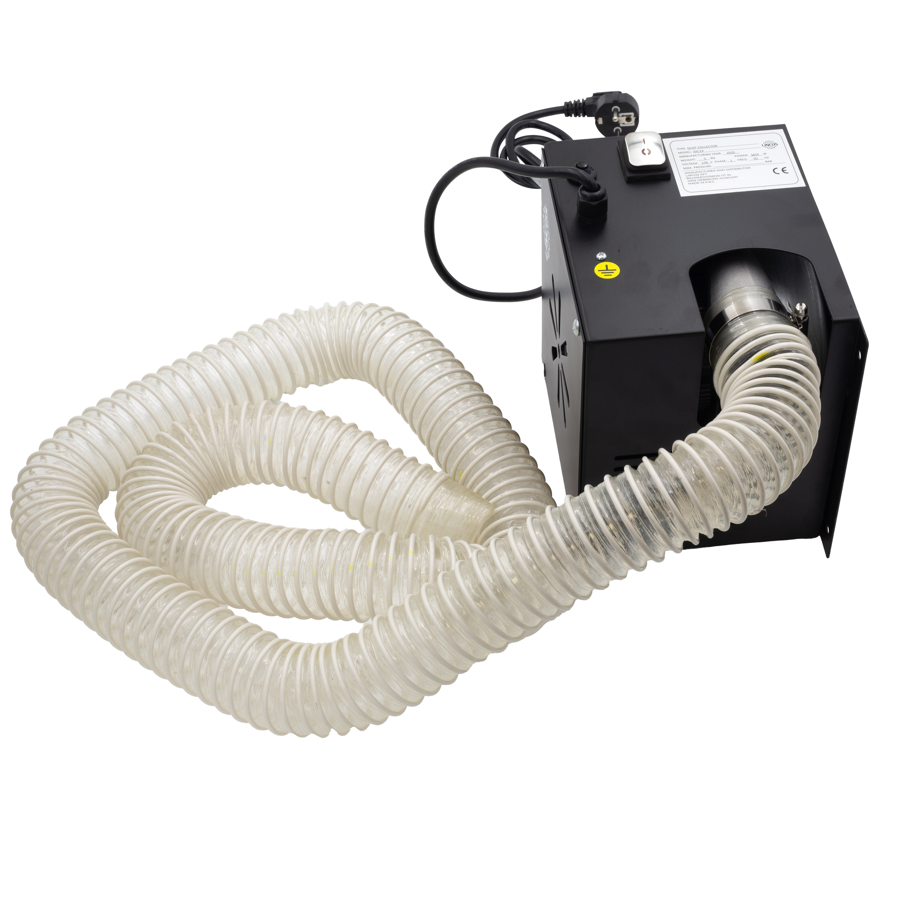 Odsavač vyniká kompaktní konstrukcí (207×196×171mm), takže jej snadno umístíte i v omezeném prostoru. Nasávací hadice má průměr Ø45mm, výfuková hadice pak Ø50mm a délku 2m. Součástí je také napájecí kabel 2m, který usnadňuje instalaci.